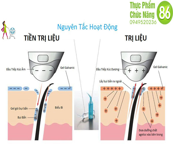 - Galvanic Spa Facial Treatment Gel: gồm có Argimine, Amino Acid giúp da phục hồi và chất Magnesium kích thích năng lượng của các tế bào da. Hai dược liệu trong 2 giai đoạn này, phối hợp với máy Galvanic Spa sẽ làm sáng da và mang lại sức sống cho làn da tươi trẻ, mịn màng.