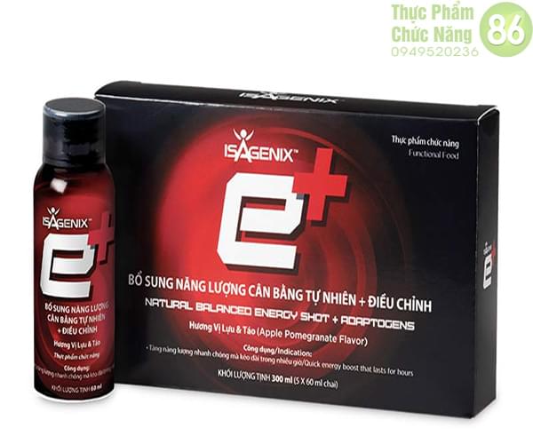 Sản phẩm E+ của Isagenix là thức uống bổ sung nguồn năng lượng tràn đầy cho sức khỏe được kết hợp từ nguồn gốc thực vật và tinh chất cafein tự nhiên để tăng năng lượng trong nhiều giờ, tăng hiệu quả vận động và sức đề kháng cho cơ thể.
