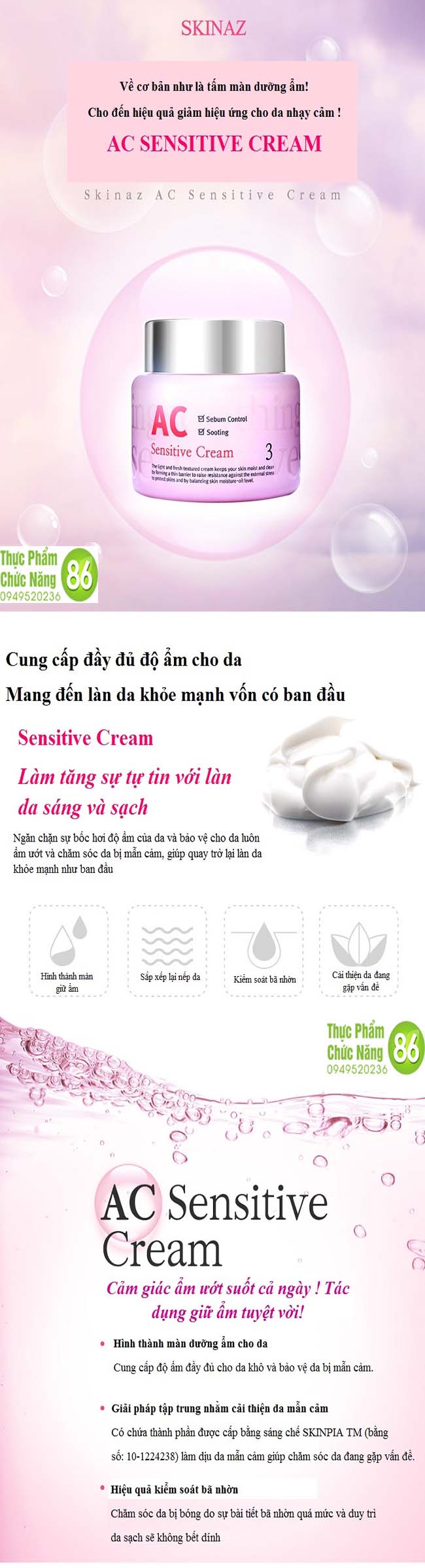 Công dụng của Kem dưỡng da AC Sensitive Cream: