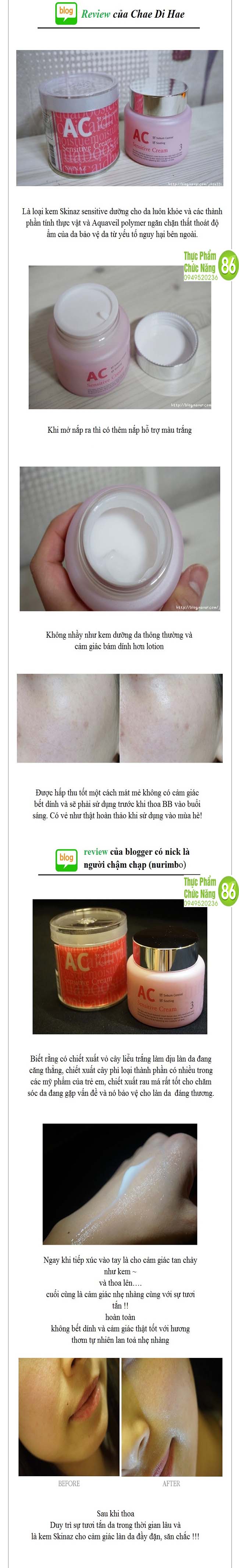 Kem dưỡng da cao cấp dành cho da nhạy cảm, da dầu, da mụn phục hồi da hư tổn AC Sensitive Cream Skinaz Hàn Quốc - 100 ml Kem dưỡng da AC Sensitive Cream từ thương hiệu Skinaz Hàn Quốc là sản phẩm lành tính thích hợp với mọi làn da,...