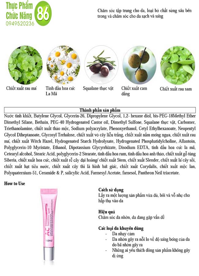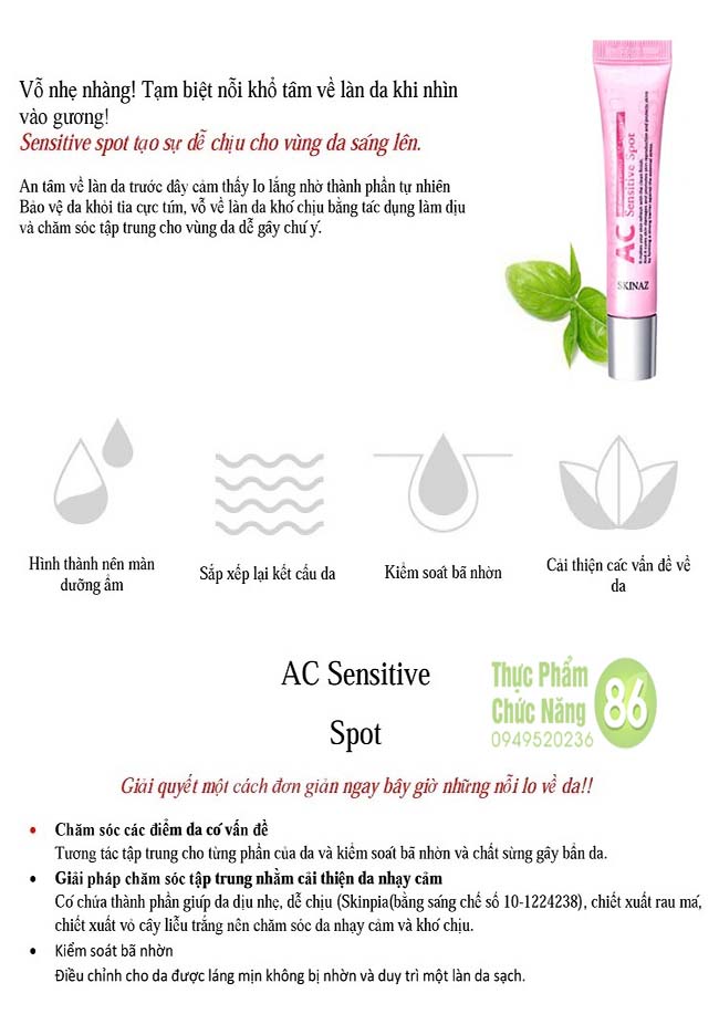 Serum trị mụn Skinaz AC Sensitive Spot giải quyết một cách đơn giản ngay bây giờ những nỗi lo về da!!!