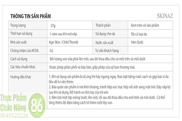 Son Crayon Skinaz cao cấp Hàn Quốc được bộ y tế cấp giấy chứng nhận
