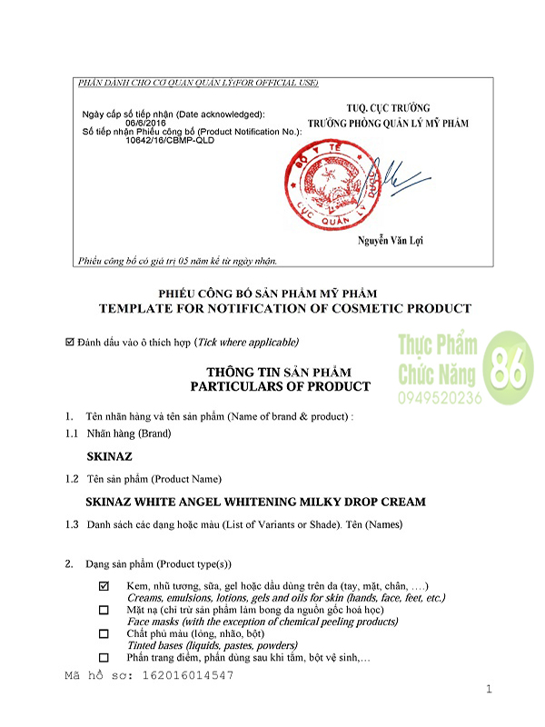 Sản phẩm được cấp phép lưu hành toàn quốc của Bộ Y Tế: