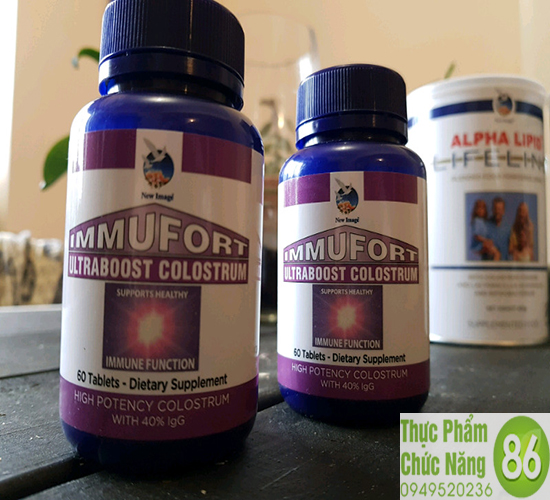 Với thành phần kháng thể tự nhiên Immunoglubin lên đến 40%, Immufort Ultraboost Colostrum là một trong những sản phẩm độc đáo khác của tập đoàn New Image. Với sự kết hợp giữa sữa non và công nghệ alpha lipid độc quyền, được điều chế dưới dạng viên nhai rất tiện lợi cho người sử dụng, đảm bảo độ hấp thu vào cơ thể trên 90%.