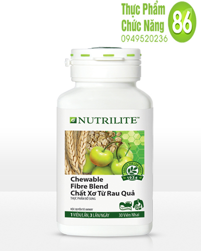 - Mỗi 1 viên Nutrilite cung cấp 1,7g xơ tiêu hóa, 0,75g FOS, 0,2g xơ hòa tan, 0,75g xơ không hòa tan từ các nguồn: xơ mía đường, gôm acacia, xơ yến mạch, bột acerola, xơ lúa mì, xơ chanh, xơ đậu nành, xơ táo, cám lúa mạch, xơ đậu Hà lan, bột xơ cà rốt, tinh bột bắp, bột opuntia ficus indica (xương rồng) cho bạn nguồn chất xơ dồi dào và tốt cho sức khỏe.
