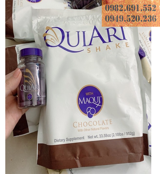 Bộ 2 Sản Phẩm Quiari Shake Socola Và Energy Viên - Giảm Cân An Toàn Lành Mạnh Xuất xứ: Mỹ Quy cách đóng gói: 1 gói /1000g. Được chia thành 28 khẩu phần sử dụng, đủ để khách hàng sử dụng trong 1 tháng. Thành phần chính gồm: chiết xuất MaquiX®, 24 loại vitamin...