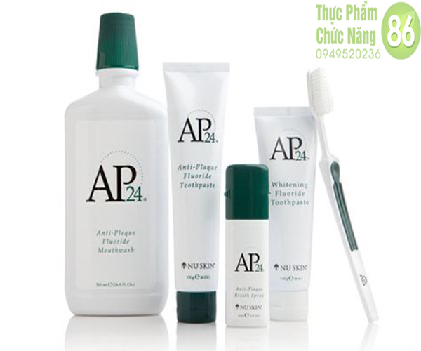 - AP-24 Anti-Plaque Fluoride Toothpaste: kem đánh răng chống sâu răng, chống mảng bám, cho hơi thở thơm mát.