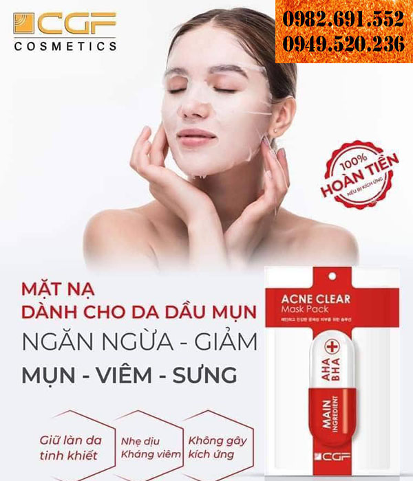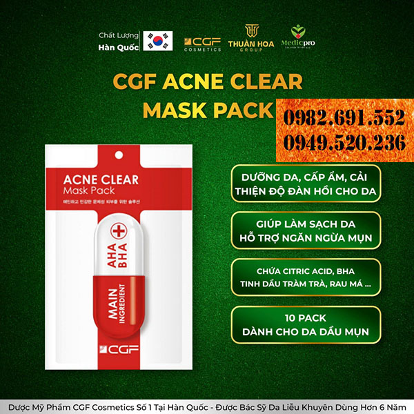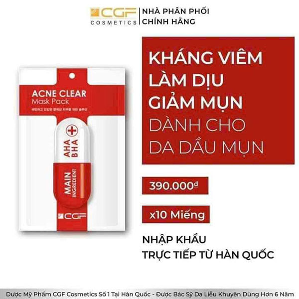 Mặt nạ CGF Ance Clear Mask - Dành cho da mụn và da nhạy cảm Công Dụng mask - Giảm Mụn Cám, Mụn Đầu Đen, Se Cồi Mụn - Giảm Sưng Mụn, Làm Sạch Dầu Nhờn, Se Khít Lỗ Chân Lông, Kiềm Dầu - Kháng Khuẩn Ngăn Chặn Tình Trạng Viêm Sưng - Phục Hồi...