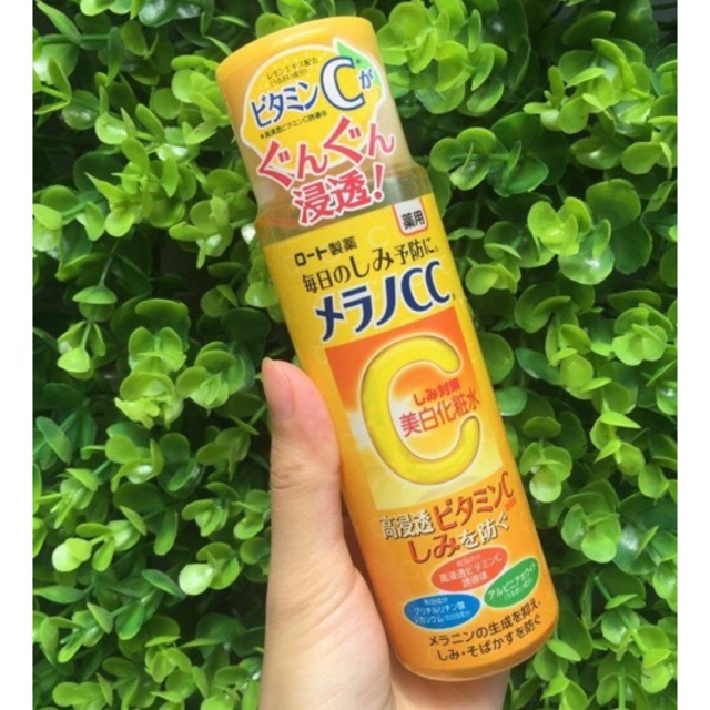 - Nước hoa hồng CC Melano chứa thành phần vitamin C tự nhiên và an toàn, có tác dụng dưỡng trắng da, điều trị nám, tàn nhang và làm mờ vết thâm, cho làn da sáng mịn hơn mỗi ngày.