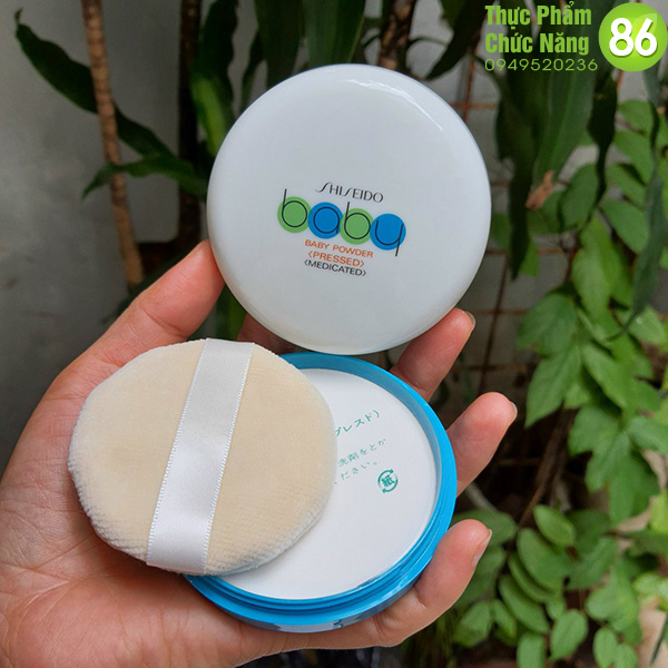 - Phấn rôm Shiseido Baby powder Pressed là loại phấn rôm được sản xuất tại Nhật Bản theo đúng tiêu chuẩn y tế quốc tế, ép thành bột mịn, màu trắng, dễ sử dụng, nhẹ nhàng, không gây khó chịu cho da, nhất là làn da nhạy cảm của trẻ nhỏ, làm cho trẻ luôn cảm thấy thoải mái, tránh rôm sẩy.