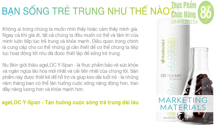 Tuổi trẻ mỗi con người qua đi, để lại bao tàn dư và những luyến tiếc về sắc đẹp cũng như sức khỏe bị thời gian tàn phá. Vậy nên, nuskin thấu hiểu điều đó và dành tặng bạn “viên ngọc quý” ageloc youth span để cùng bạn nâng niu nhan sắc, gìn dữ sức khỏe vượt bao năm dài tháng rộng của hành trình cuộc sống về sau.