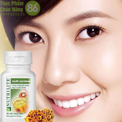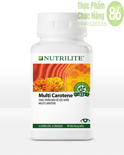 Nutrilite Multi Carotene có chứa một loạt các chất carotenoid tự nhiên (Beta carotene, lycopene và lutein) & dinh dưỡng thực vật khác từ nhiều nguồn khác nhau và do đó nó là nhiều hơn như kết hợp của carotenoid được tìm thấy trong trái cây và rau quả. Sản phẩm này có thể giúp bạn lấp đầy những khoảng trống dinh dưỡng có thể có trong lượng carotenoid và là dành cho sử dụng hàng ngày để hỗ trợ sức khỏe của da, sức khỏe mắt và cung cấp hàng loạt các hoạt động chống oxy hóa.