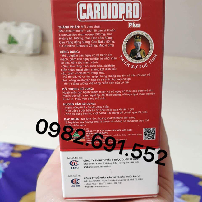 Cardiopro có chứ IMCDeltaImmune và Cao Hoàng Bá.