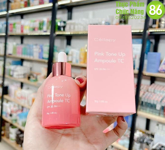 Tinh Chất Dưỡng Trắng CHỐNG NẮNG Căng Bóng Nâng Tone Da CELLAPY PINK TONE UP AMPOULE