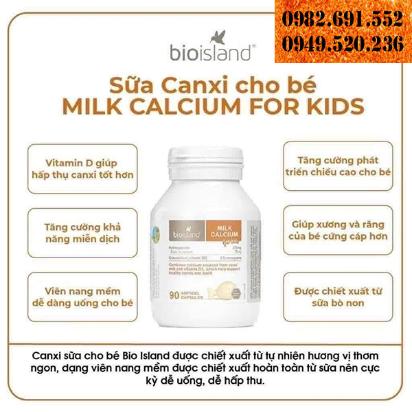 Sữa canxi cho bé bio island milk calcium for kid của Úc được điều chế từ thành phần chính là sữa bò non, giúp hỗ trợ tốt cho sự phát triển của xương và răng ở trẻ nhỏ. Đặc biệt bio island canxi for kid được sản xuất từ nguồn canxi tự nhiên rất dễ hấp thụ và không hề gây lắng cặn, không gây tác dụng phụ.