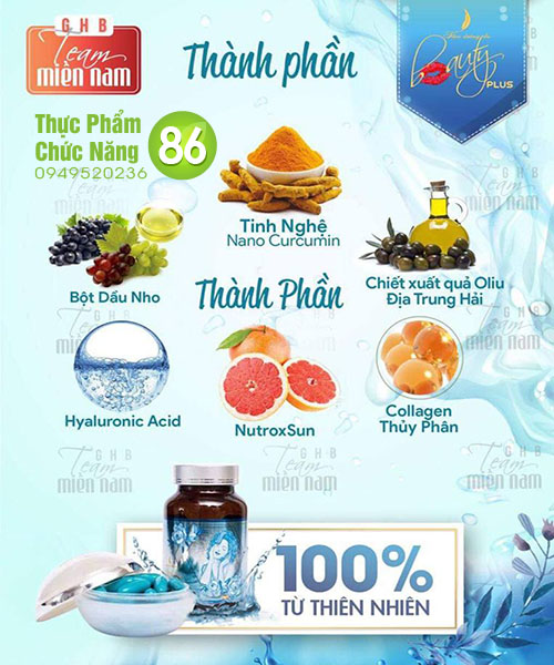 Thành phần Viên Trắng Da Beauty Plus chiết xuất 100% thiên nhiên