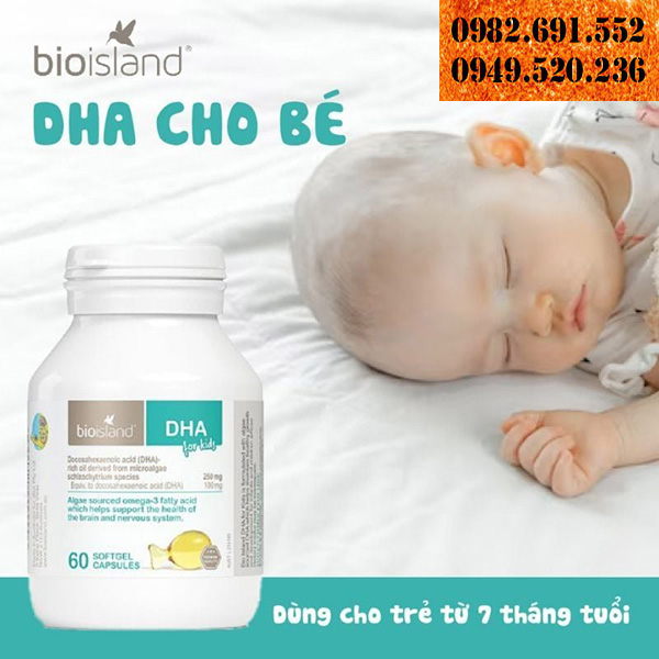 DHA là dưỡng chất quan trọng hỗ trợ phát triển trí não. Tuy nhiên, trong hầu hết các thực phẩm bé thường ăn rất ít DHA. Chưa kể đến trường hợp bé biếng ăn hoặc hấp thu kém. Chính vì vậy, hãng Bio Island đã cho ra đời thực phẩm chức năng bổ sung DHA For Kids chiết xuất từ dầu cá tinh khiết. Mỗi viên cung cấp 100mg DHA giúp bé thông minh, học hỏi, ghi nhớ tốt hơn. Đồng thời, DHA tốt cho giác mạc, thị lực, miễn dịch, sức khỏe tổng thể.