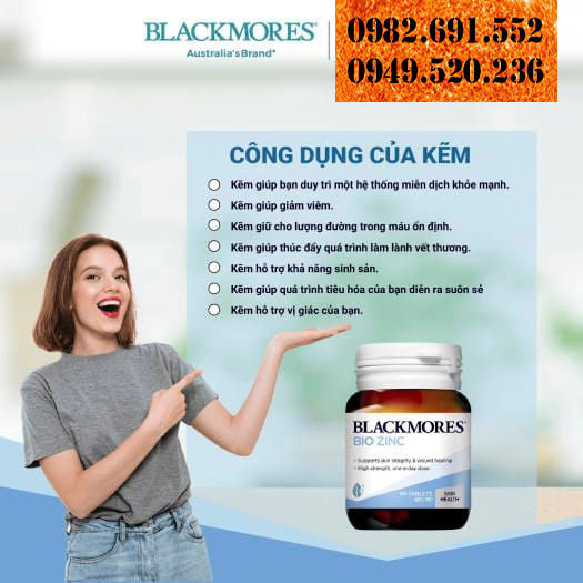 – Đối với phụ nữ, Viên uống kẽm Blackmores Bio Zinc giúp cải thiện sức khỏe và nuôi dưỡng làn da hoàn hảo. Tình trạng mụn trứng cá, da lão hóa, chảy xệ sẽ được cải thiện đáng kể.
