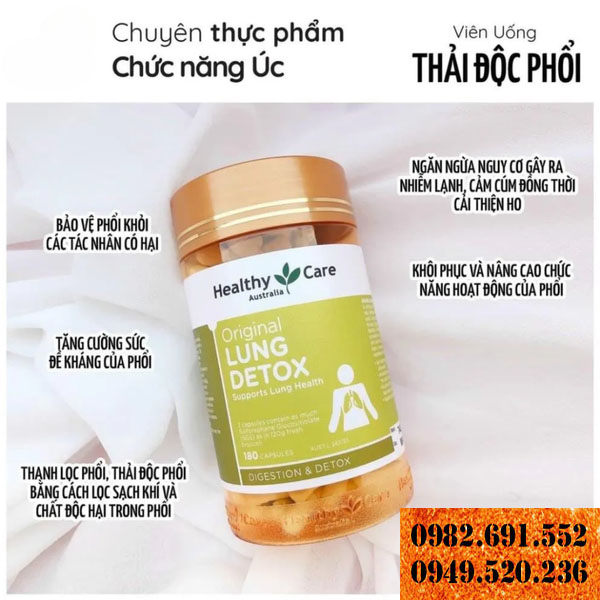 ✔ Thuốc thải độc phổi lung detox của Úc giúp thanh lọc phổi, đào thải tạp chất, độc tố giúp phổi khỏe mạnh, hoạt động đúng chức năng.