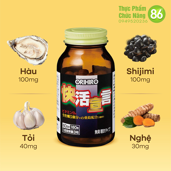 Viên uống tinh chất hàu tươi tỏi nghệ Orihiro 180 viên