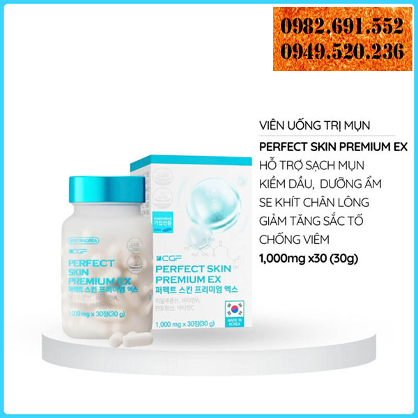 Viên uống giảm mụn CGF Perfect Skin Premium EX là sản phẩm chăm sóc da tiên tiến, được nghiên cứu và phát triển với công nghệ Hàn Quốc, chuẩn y khoa. Không giống các sản phẩm bôi ngoài chỉ tác động bề mặt, thuốc uống trị mụn này hoạt động từ bên trong, giúp giải quyết tận gốc các vấn đề về mụn, đặc biệt là mụn nội tiết, mụn viêm và mụn dai dẳng. Sản phẩm phù hợp với mọi loại da, đặc biệt là da dầu và da nhạy cảm, mang lại làn da sạch mụn, se khít lỗ chân lông và rạng rỡ.