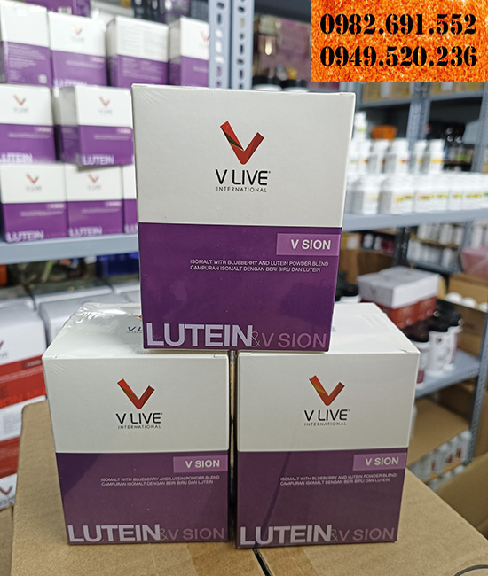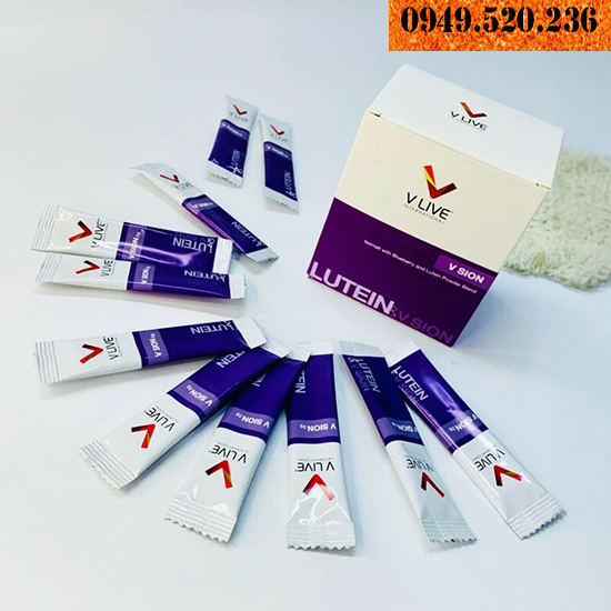 Vsion Lutein Vlive international khỏe đôi mắt giúp tăng cường thị lực giảm mỏi mắt V Sion Lutein được sản xuất dựa trên ứng dụng công nghệ sinh học tiến tiến của Đức chứa đến 160 loại dinh dưỡng cần thiết giúp hỗ trợ sức khỏe tối ưu cho cơ thể...